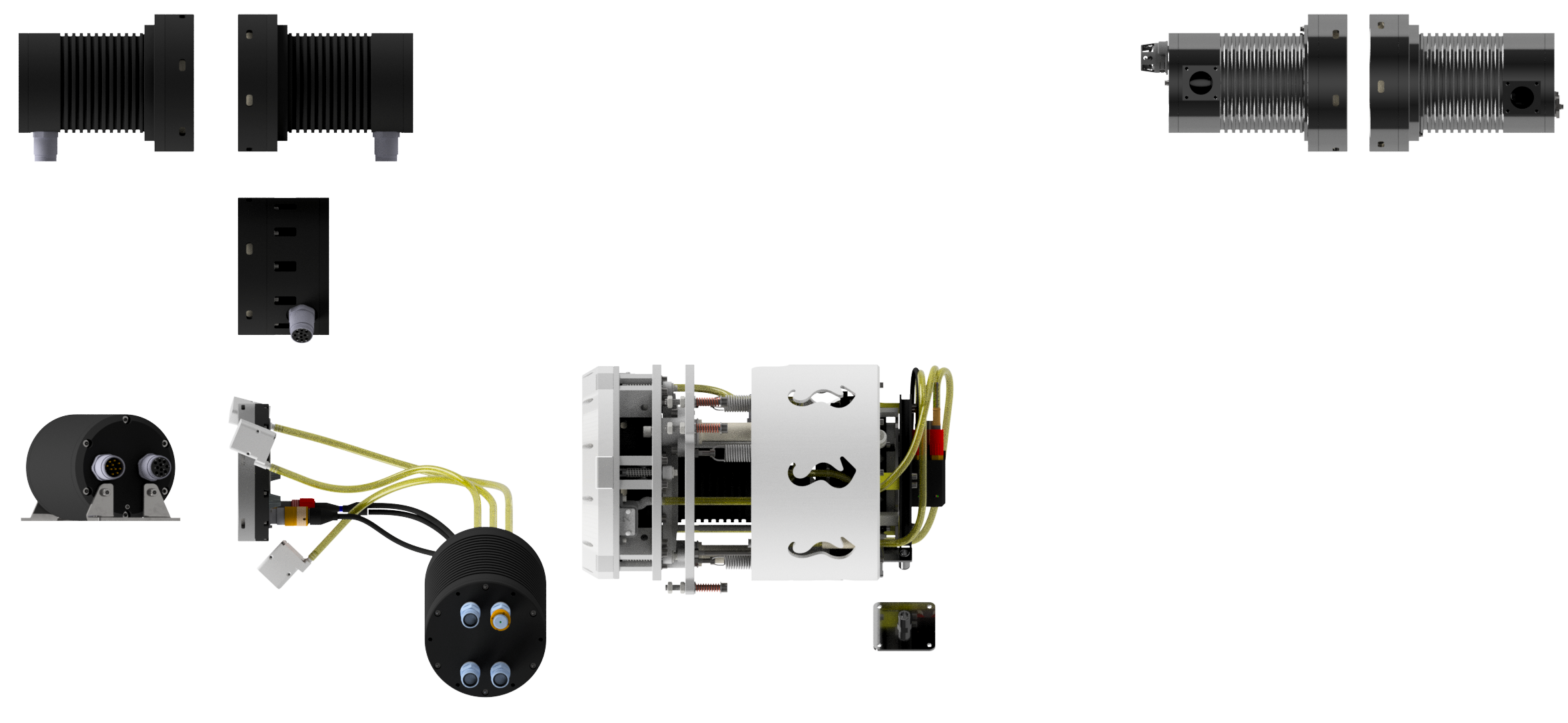 Flexible input - AC/DC power supply (PFC) that can handle 100-250VAC or 145-350VDC input voltage and 370VDC output to power the primary side connector. Primary side can handle 310-340VDC variation in voltage input and secondary side deliveres 325VD +/- 5%. A telemetry/diagnostic interface is available on port 5000 on the ethernet interface. Approx. efficiency of the inductive connectors, end to end is >90%. The inductive coils are galvanically isolated from each other and can be regarded as a 1 to 1 transformer. The 2kW system has a 10-pin Subconn connector where RS232 or RS485 (230kbps) can be configured together with Ethernet (80Mbps) and Power. Feasible to have RS232 configured on the Secondary side (tool side) and RS485 configured on the primary side (ROV side). Most systems rated to 3000m water depth.